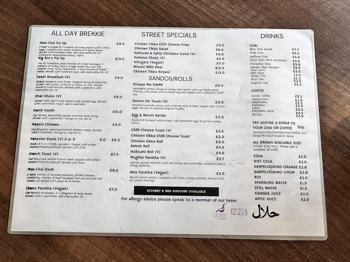 In conclusion, Mon Chai - Bengali Cafe & Halal Breakfast in Norwich provides a memorable dining experience, with its unique blend of Bengali cuisine, halal options, and inviting atmosphere. Whether you're craving a traditional breakfast or looking to try something new, this cafe is a must-visit for anyone in the area.